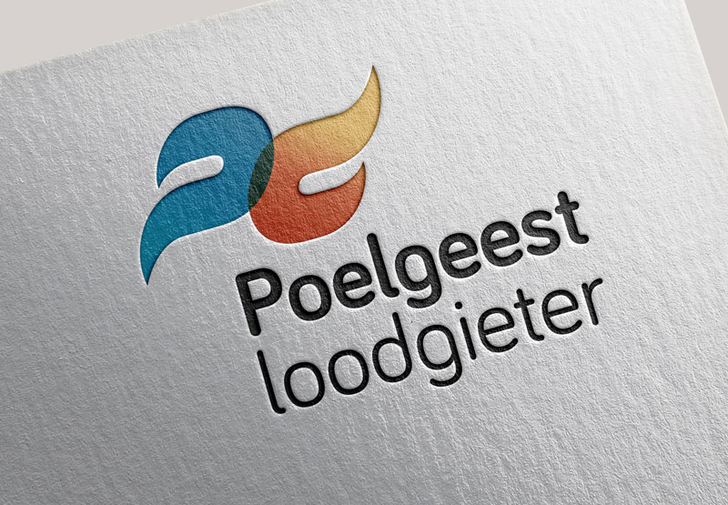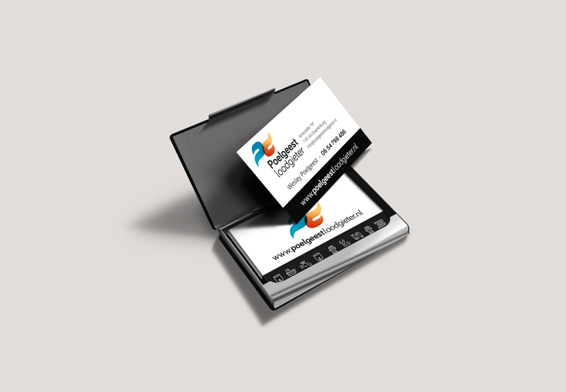 Huisstijlontwerp bestaande uit logo, visitekaartje en briefpapier. Poelgeest Loodgieter. P omgedraaid maakt de L.